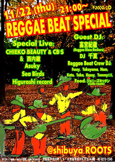 DJ後藤“shima”ヒロシ MICCYAN(FRANTIC BROWN BEAT!) REI MASTROGIOVANNI REO(SPYZZ/24h_ska) 大前 歩 磯野カツオ 斎藤ジョゼ LAS ONNIZ(Keiko.K, norieda, nao) 佐藤アキラ(ska in the world) 宮内 健(ramblin’/Hi-Fat)…and more?