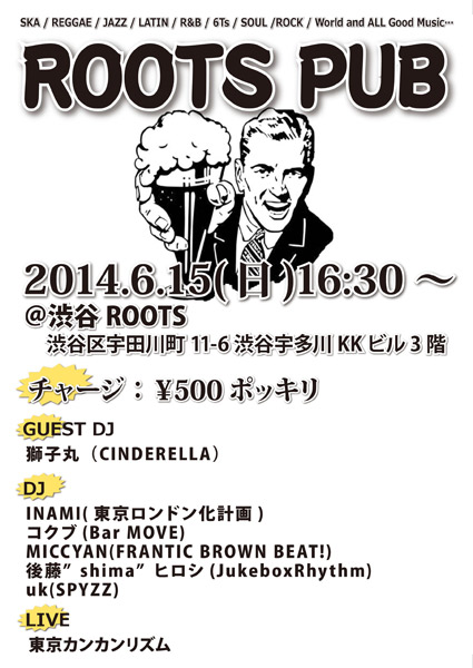 DJINAMI(東京ロンドン化計画) コクブ(Bar MOVE) MICCYAN(FRANTIC BROWN BEAT!) 後藤”shima”ヒロシ(JukeboxRhythm) uk(SPYZZ)