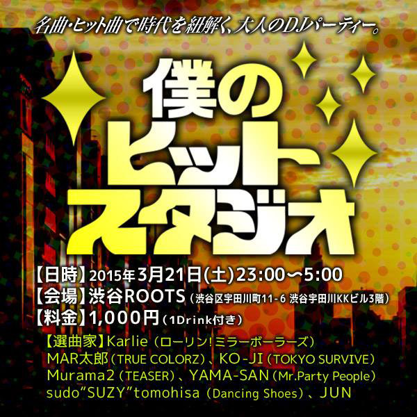 DJKarlie(ローリン!ミラーボーラーズ) KO-JI(TOKYO SURVIVE) Murama2(TEASER) YAMA-SAN(Mr.Party People) MAR太郎(TRUE COLORZ) sudo“SUZY”tomohisa(Dancing Shoes) JUN