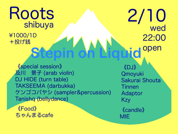 SPECIAL SESSION及川景子 [ arab violin ] (セントヒトヨ) DJ Hide [ turn table ] (KEMURI PRODUCTIONS) TAKSEEMA [ darbukka ] (arbaa tabbaliin) ケンゴコバヤシ [ sampler& percussion ] (十三画) Tanishq [ bellydance ]