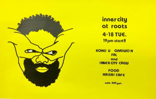 DJINAMI(ROOTS PUB) コクブ(Bar MOVE) 楠本千尋(お休み) KAKEI(お休み) MICCYAN(FRANTIC BROWN BEAT!) 後藤”shima”ヒロシ(JukeboxRhythm) uk(SPYZZ) 今晴晴