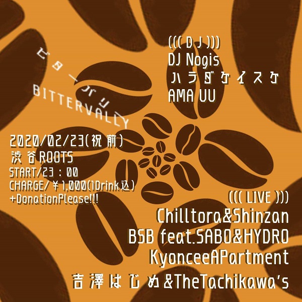 DJINAMI(東京ロンドン化計画) コクブ(Bar MOVE) MICCYAN(FRANTIC BROWN BEAT!) 後藤”shima”ヒロシ(JukuboxRhythm) uk(SPYZZ)